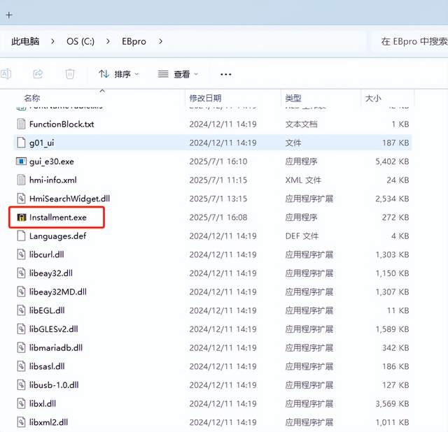 在工业自动化设备的销售订单,常常面临这样一个尴尬的困境:凭借过硬的技术和优质的设备,签下订单并不难,但后续的收款环节却屡屡受阻。巨额的设备款项压得采购方喘不过气,也让销售方的资金周转陷入僵局,轻则影响企业的正常运营,重则可能引发一系列连锁反应,破坏合作双方的信任。面对 “卖出容易、收款难” 的行业痛点。 对一些收款难的设备,分期付款的程序功能是很有必要的,分期付款的程序可以写在PLC里面,这种一旦程序被读出就能破解。威纶通CMT X系列的触摸屏也提供了分期付款的功能,通过简单的设置就能实现。 首先需要到EB pro软件的安装目录,打开installment.exe文件。