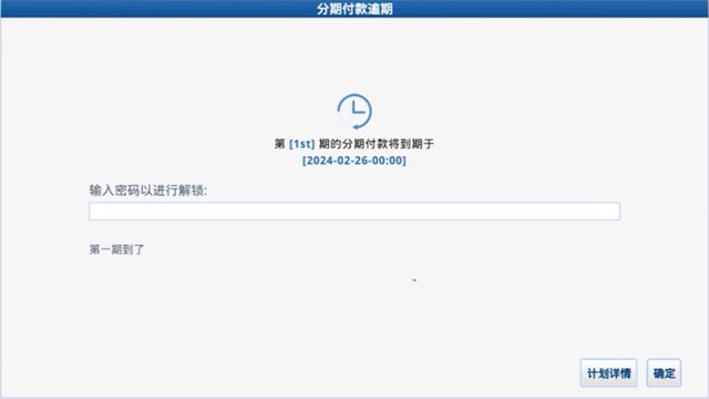 当到达对应期限,会触摸屏会一直弹出以下界面,我们需要输入对应密码,即可解除弹窗,如果输入的是管理员密码,可以解除所有期的密码。