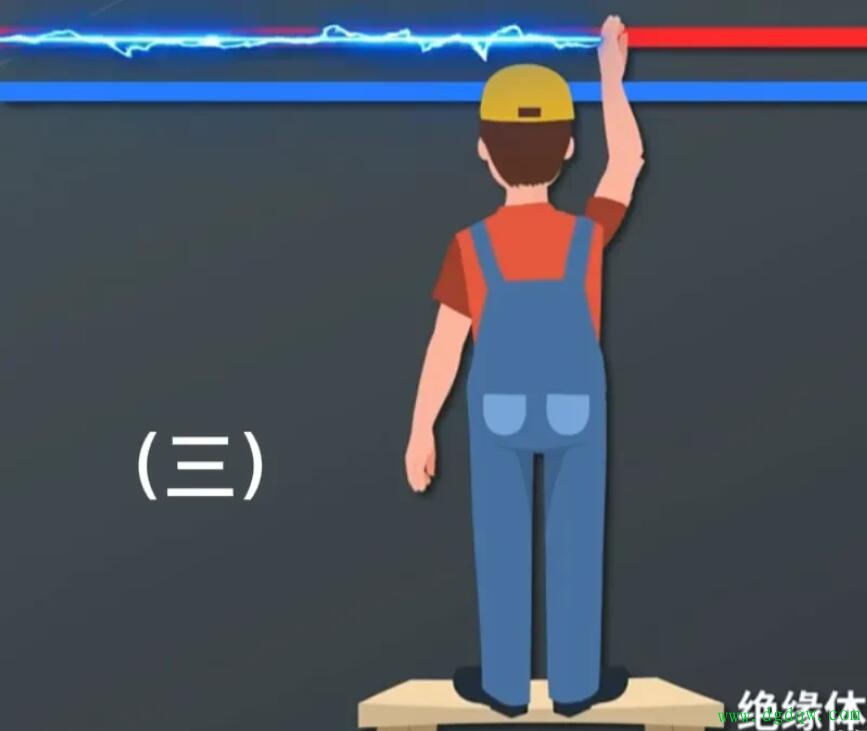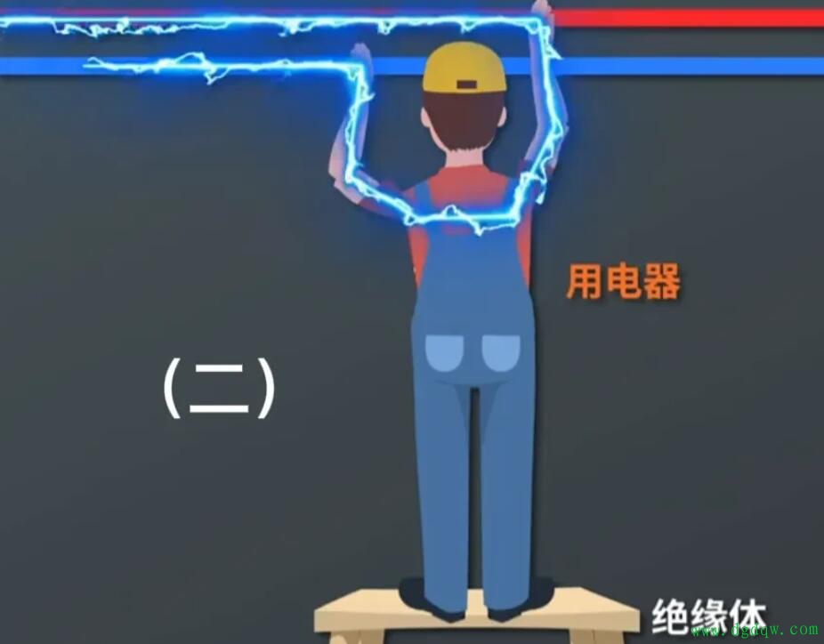 在某些情况下,人们可能站在绝缘体上,如木椅或木梯。这时,如果一只手触摸火线,另一只手触摸零线,电流会从火线流入人体,然后经过人体流向零线。同样地,由于人体内部的电阻,电流通过时会产生热量,导致触电。这种触电方式称为双线触电,因为火线和零线都与人体接触。