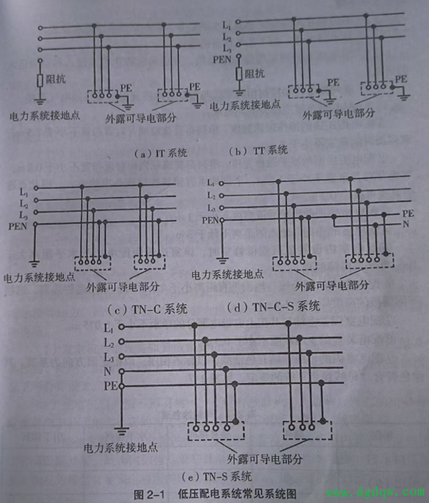 1.TN-C系统:零线N和地线PE合二为一,叫PEN线。优点是省线材、成本低,但安全性差,一旦PEN线断线,设备外壳就会带电,现在新建建筑基本禁用,只有老厂房、老旧工业配电还在用。